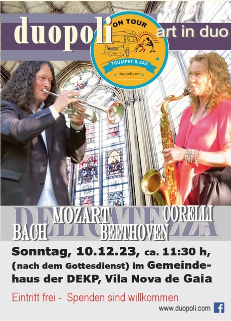 Sonja und Karlheinz Höflich bereisen als “Analoge Nomaden” mit ihrem TourBus die iberische Halbinsel, um Menschen mit ihrer Kunst zu überraschen und zu begeistern. Sie spielen für uns ihr Repertoire klassischer Meister: Mozart, Beethoven, Bach und Corelli.